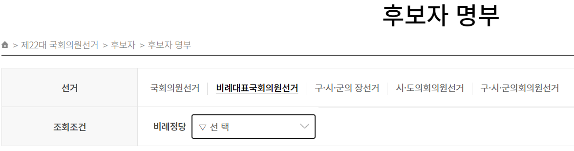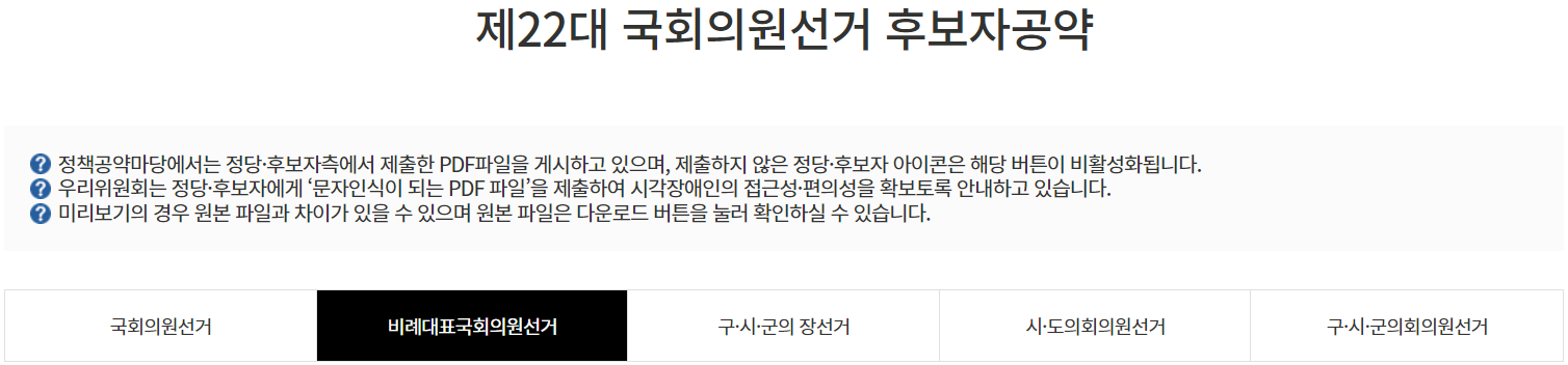 제22대 국회의원선거 비례대표 후보자 공약 확인하기